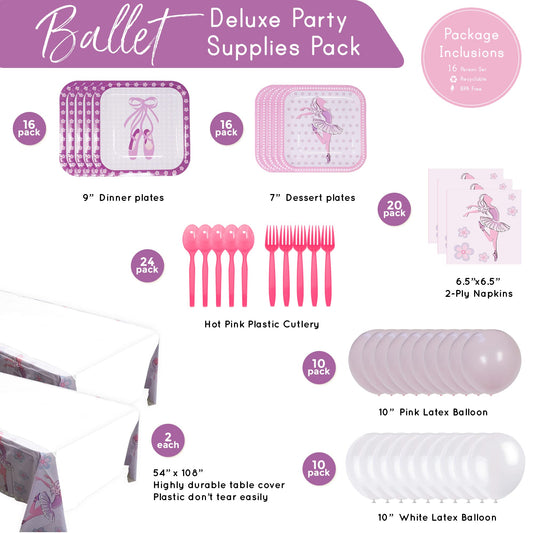 Ballet Deluxe Party Supplies Pack (122 Pieces for 16 Guests)