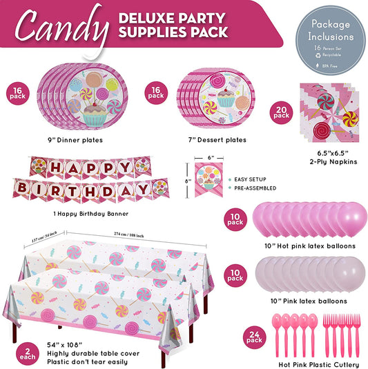 Candy Deluxe Party Supplies Packs (For 16 Guests)