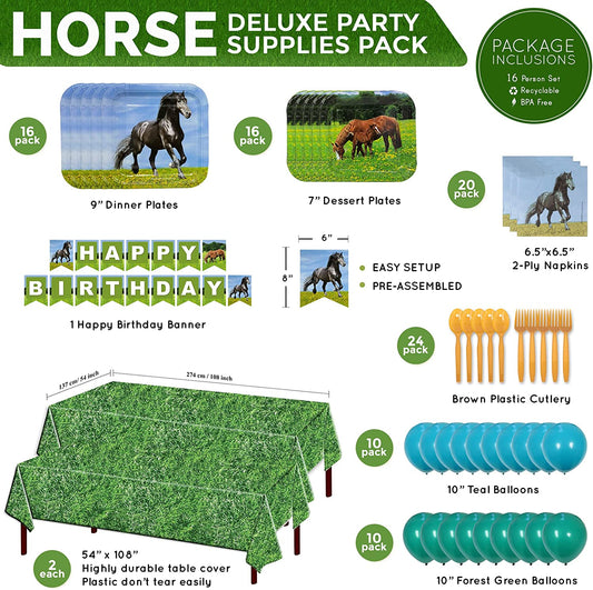 Horse Deluxe Party Supplies Pack (122 Pieces for 16 Guests)