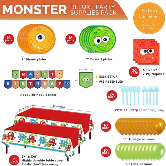 Monster Deluxe Party Supplies Pack (123 Pieces for 16 Guests)