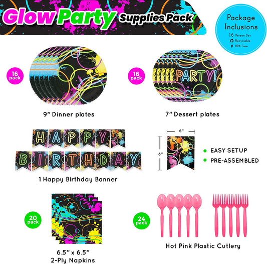 Glow Deluxe Party Supplies Packs (For 16 Guests)