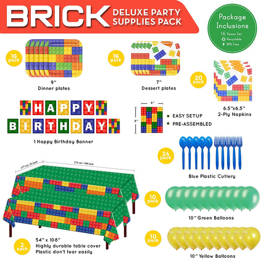 Brick Party Supplies Packs (108 Pieces for 20 Guests)