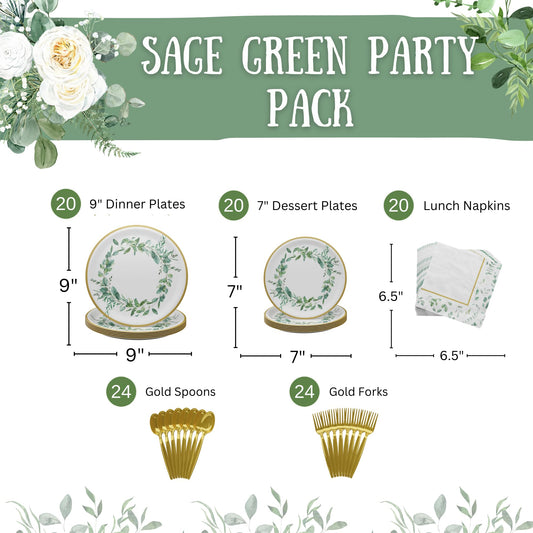 Sage Green Party Supplies (108 Pieces for 20 Guests)