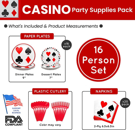 Casino Party Supplies Pack (100 Pieces for 16 Guests)
