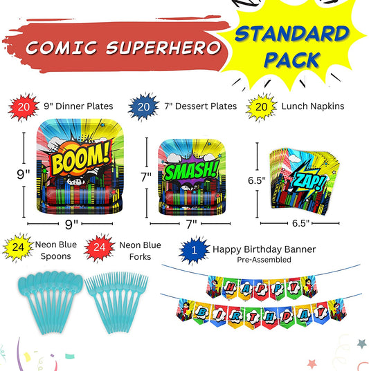 Comic Superhero Standard Party Supplies Pack (109 Pieces)