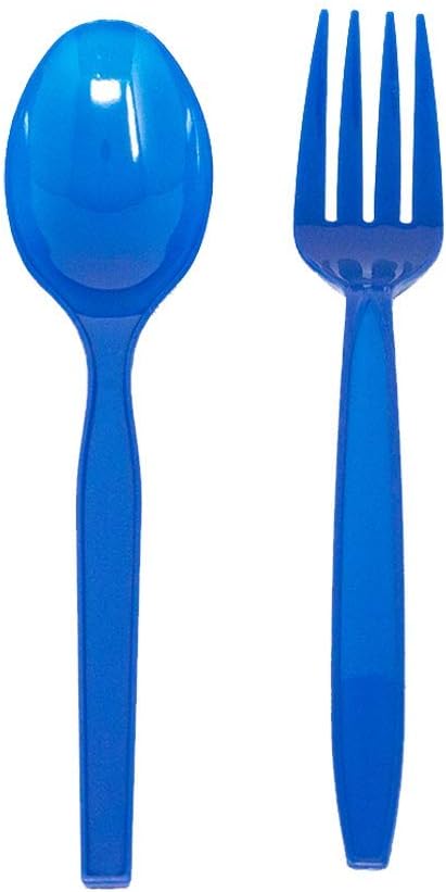 [FOR 20 GUESTS] Our Brick Party Supplies Packs (Serves 20) includes 20 9-inch paper dinner plates, 20 7-inch paper dessert plates, 20 paper lunch napkins, 24 blue plastic forks, and 24 blue plastic spoons.