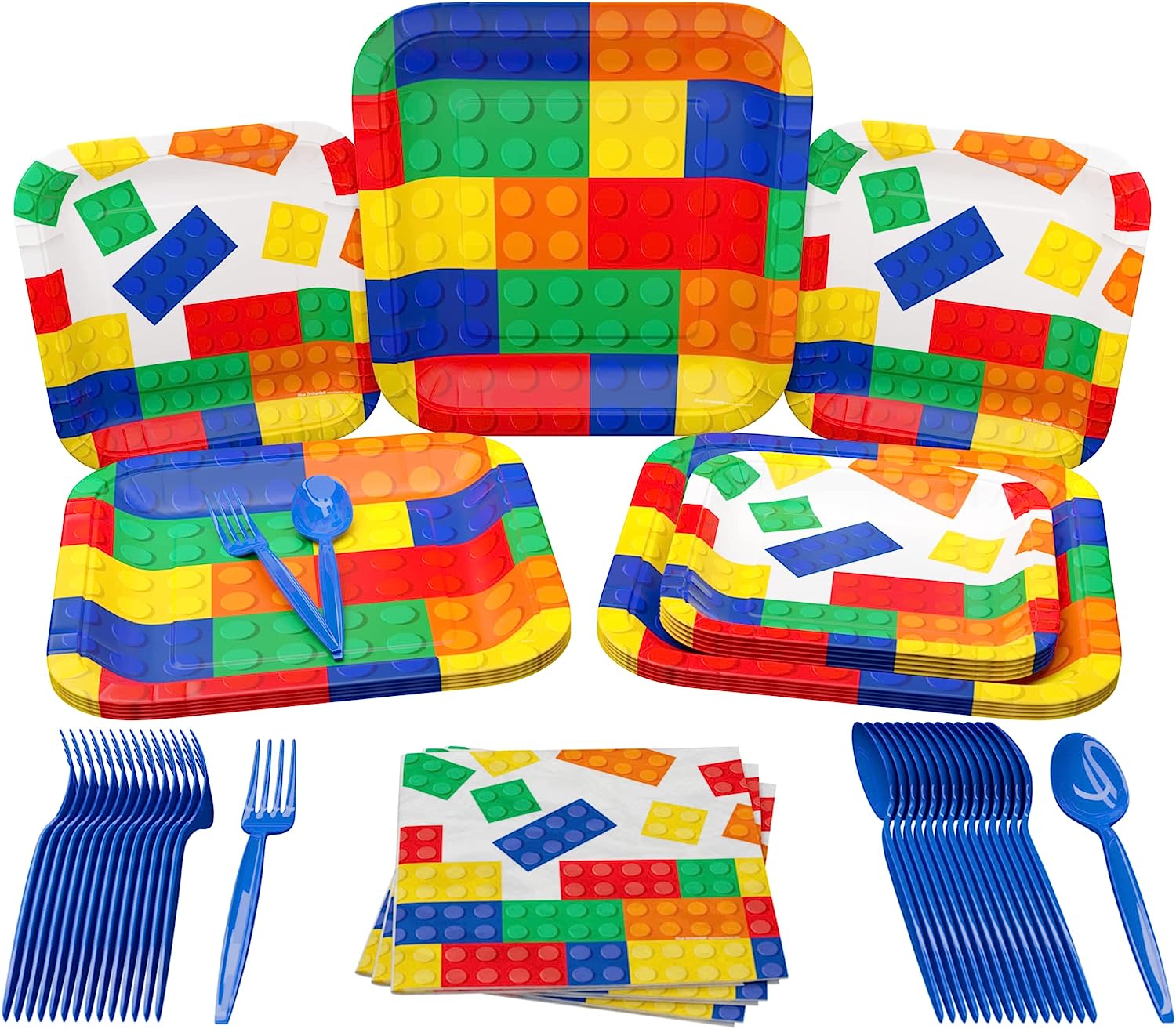 Brick Party Supplies Packs (100 Pieces for 20 Guests) - Building Block Party Supplies, Gamer Birthday Decorations, Gamer Party Supplies , Blocks Party Decor, Brick Birthday