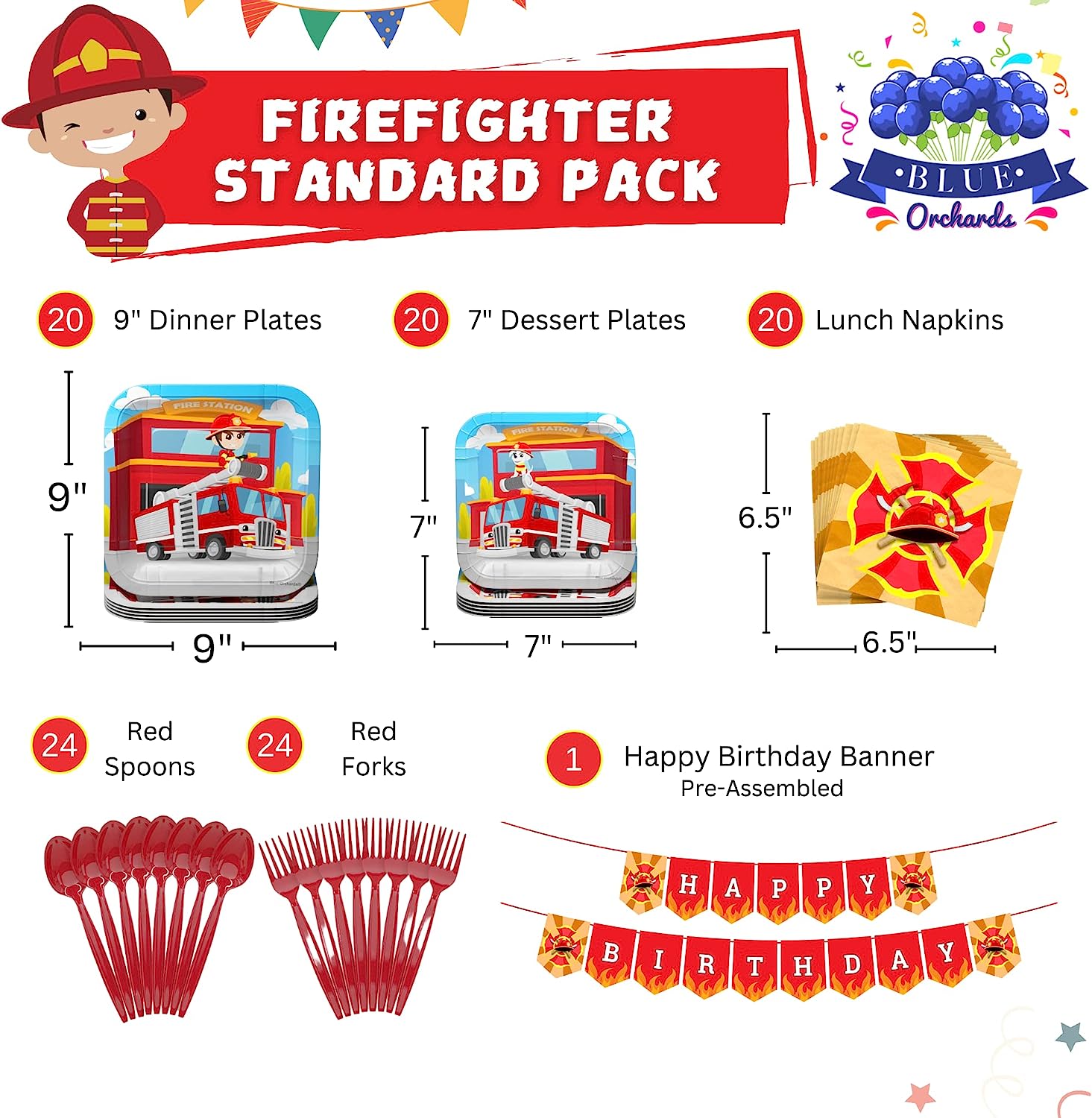 Firefighter Standard Party Supplies Pack (109 Pieces for 20 Guests) - Fireman Party Plates and Napkin, Fire Truck Birthday, Boy Birthday Party Decorations, Firefighter Theme Party